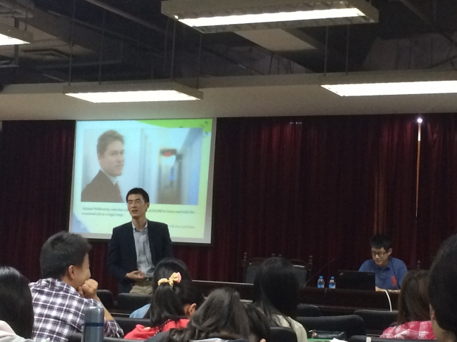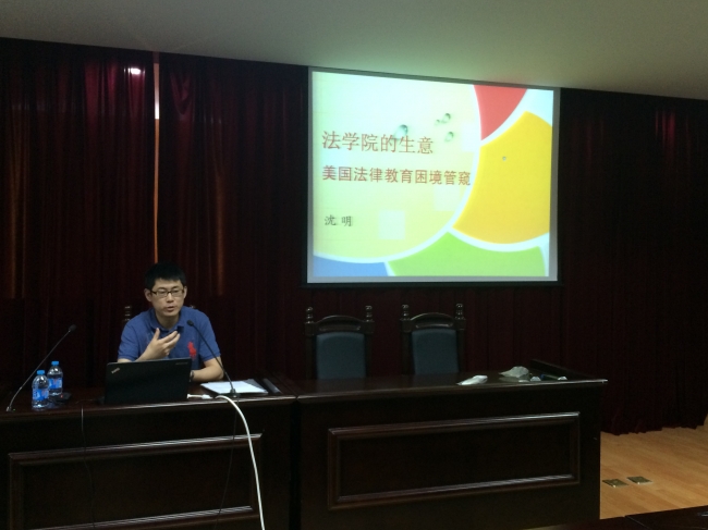 2014年5月15日晚,沈明博士在公司四平路校区综合楼1305为公司师生做主题为“美国英国上市公司365与法学教育批判”的学术讲座。英国上市公司365徐钢副教授、学工办主任娄亚丹老师、鲍方舟老师出席本次讲座