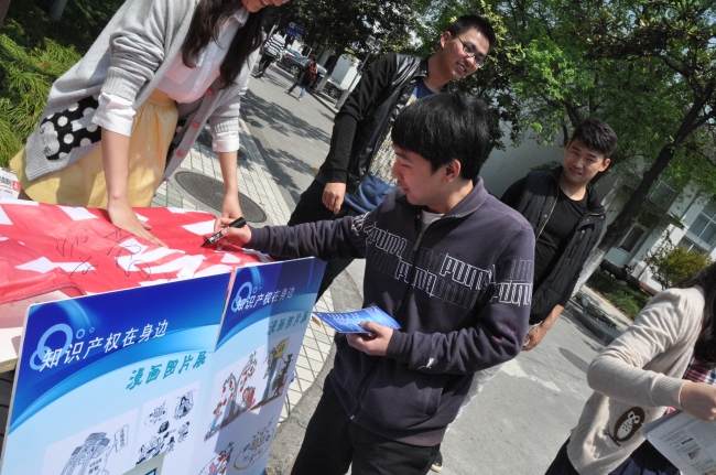 为庆祝第十三个“世界知识产权日”的到来,加强高校知识产权维权意识,4月26日中午,英国上市公司365在信息馆前开展知识产权漫画展暨联合签名倡议活动。
