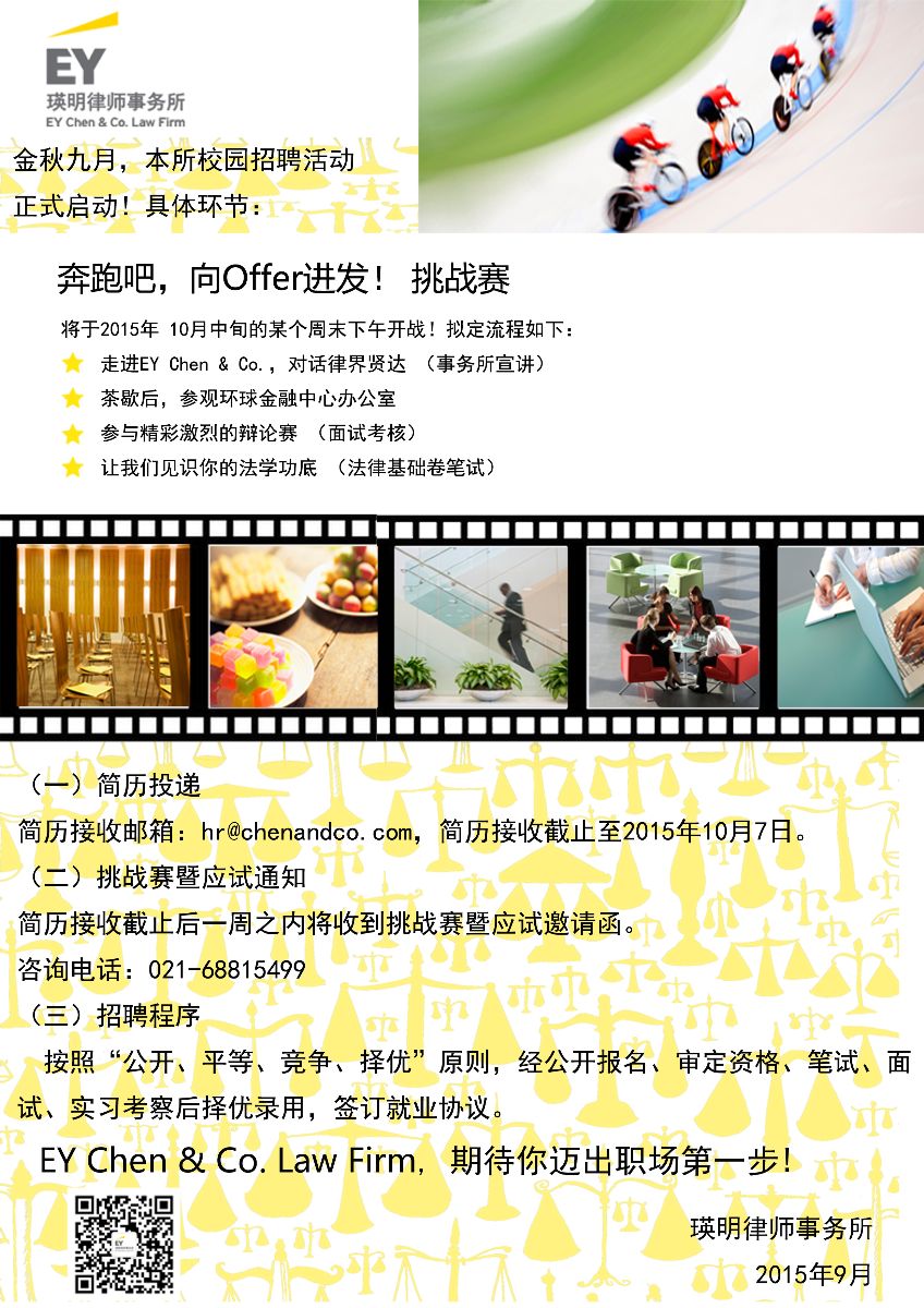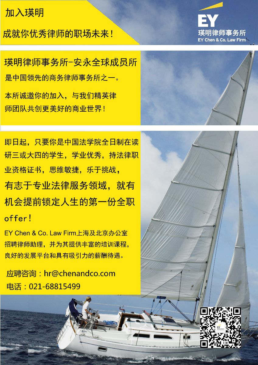 上一篇:【实习】美国尼克松皮博迪律师事务所上海代表处招聘实习生 下一篇:英国安理国际律师事务所上海代表处招募知识产权实习生