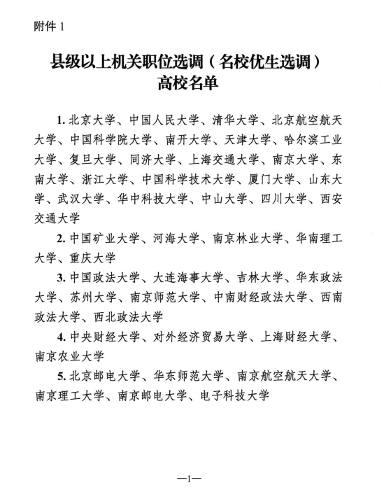 1.县级以上机关职位选调(名校优生选调)高校名单