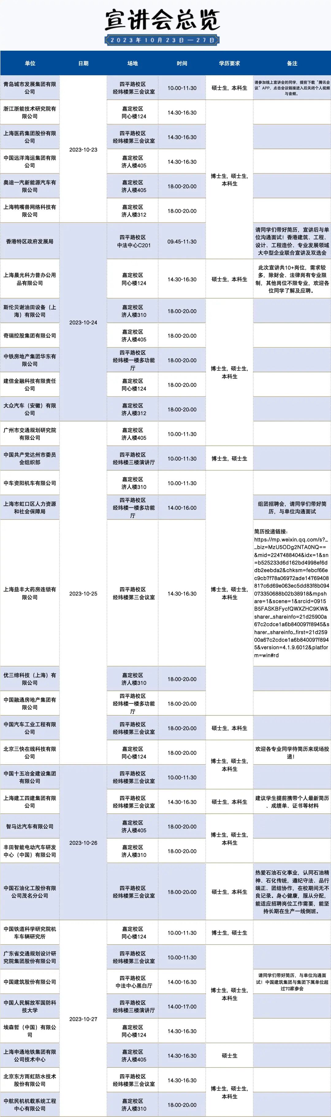上一篇:宣讲会丨十月(10.30-11.03)宣讲会来袭,快来一键收藏宣讲日历! 下一篇:上海实业集团&上海医药集团 同济专场宣讲