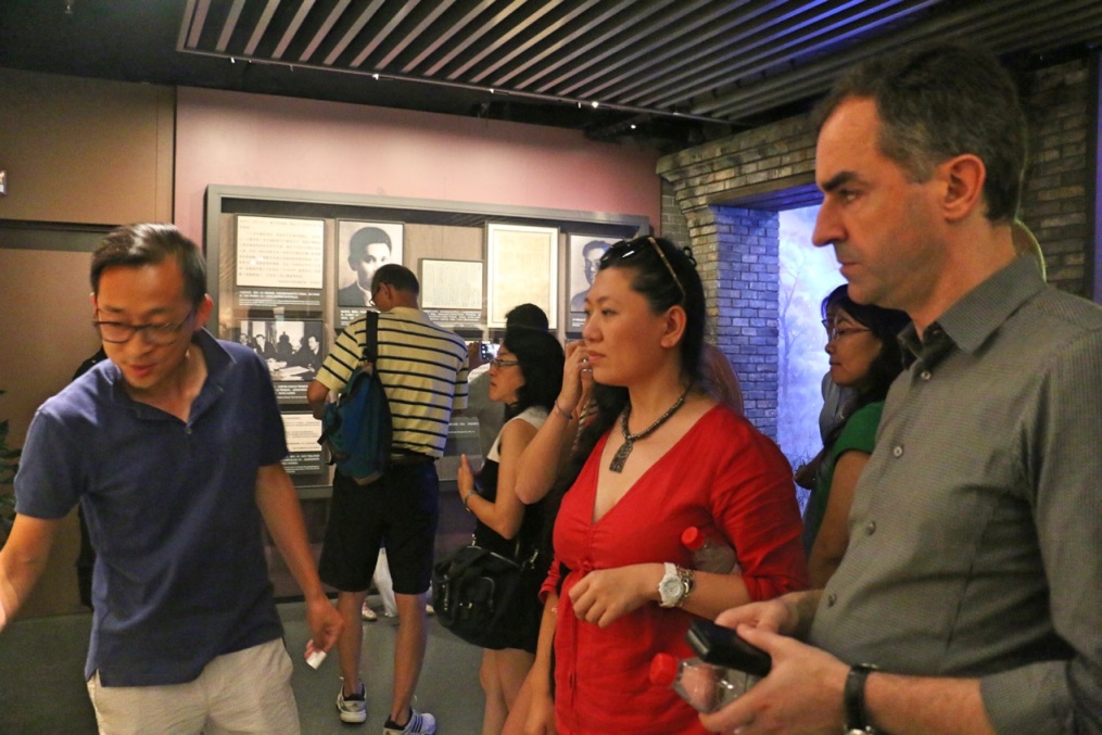 为了向法国员工更好地展现上海的百年沧桑和历史巨变,7月8日下午,在全体学员满怀期待中,暑期班学员参观了中共一大会址。下车后,一座典型的上海石库门式建筑便映入眼帘,在场的法国师生被深深吸引。外墙青红砖交错,镶嵌白色粉线,黑漆漆的大门上配上铜环,门框围着米黄色石条,整座建筑散发出了历史厚重感。