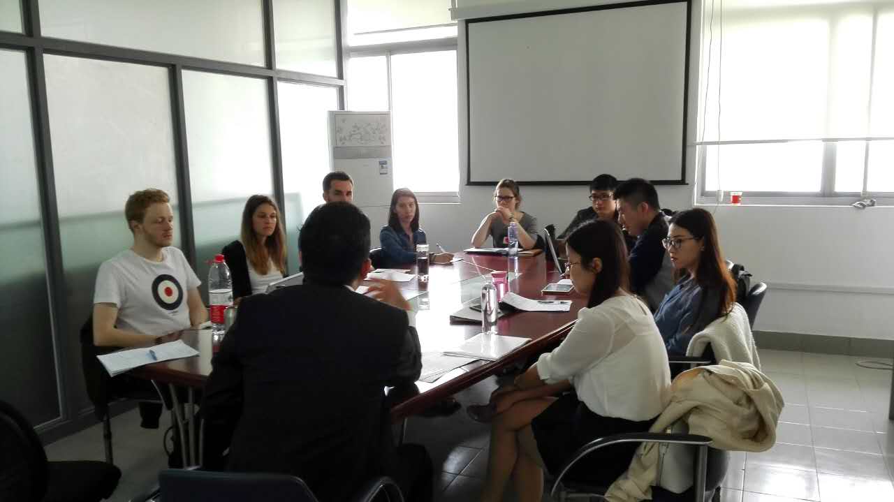 第一次课程于2017年4月22日上午进行,授课对象为中外硕士研究生,讨论课采用英语进行。涂长风博士长期从事企业跨国购并业务,对中国、德国、欧盟相关的法律法规十分熟悉,对购并过程中各个环节的法律核心问题也十分了解。所以,他不仅具有很深的理论功底,而且实务经验也十分丰富。因此,他主持的讨论课也驾轻就熟,风格独具一格。首先,他介绍了购并在法律实务中的重要性,然后通过图表的形式向员工说明了企业购并流程中的核心环节,接着又与员工讨论第一个核心环节及“保密协议”。汪黎女士给每位员工发放了一份“保密协议范本”(英文),并将所有员工分成收购方和被收购方两组,要求各组同学分别从各自的角度认真研读协议的每个条款,提出修改意见并进行协商。