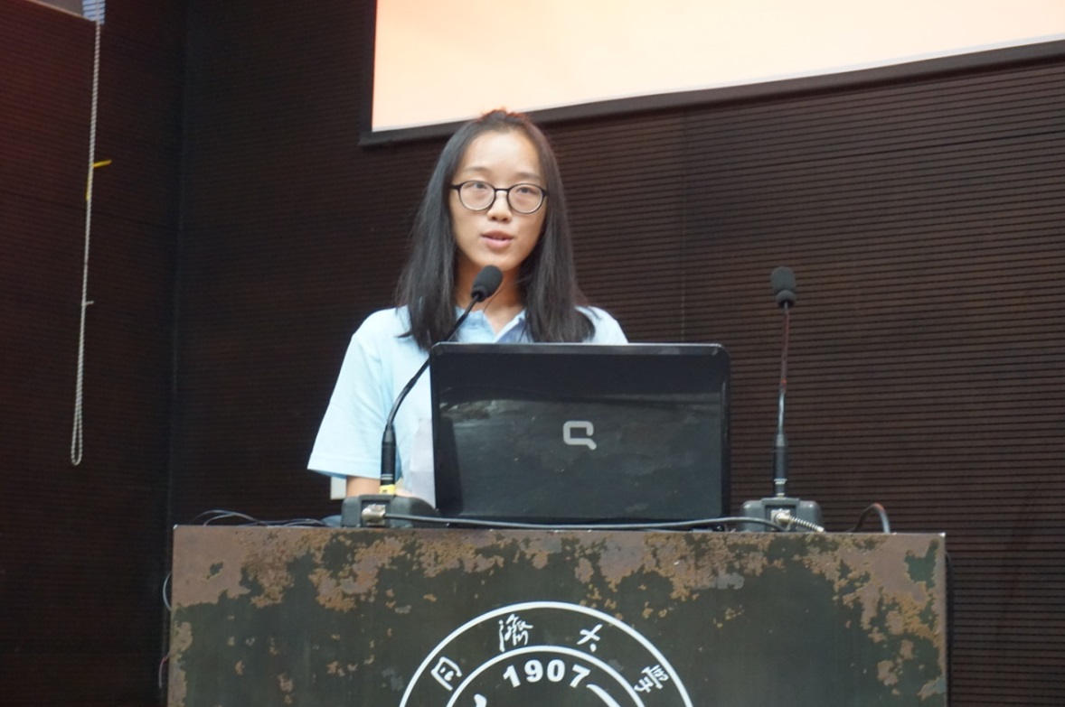 2015级本科生田雪纯同学代表老生进行发言。她向学弟学妹们强调了学习的重要性,希望大家要利用好资源,比如图书馆和选修课,多多读书,多和同学讨论。同时她谈到了自主自立,同学们要成为自己,把握好手中的选择权,活出属于自己的精彩,而不是人云亦云,盲目地混日子。