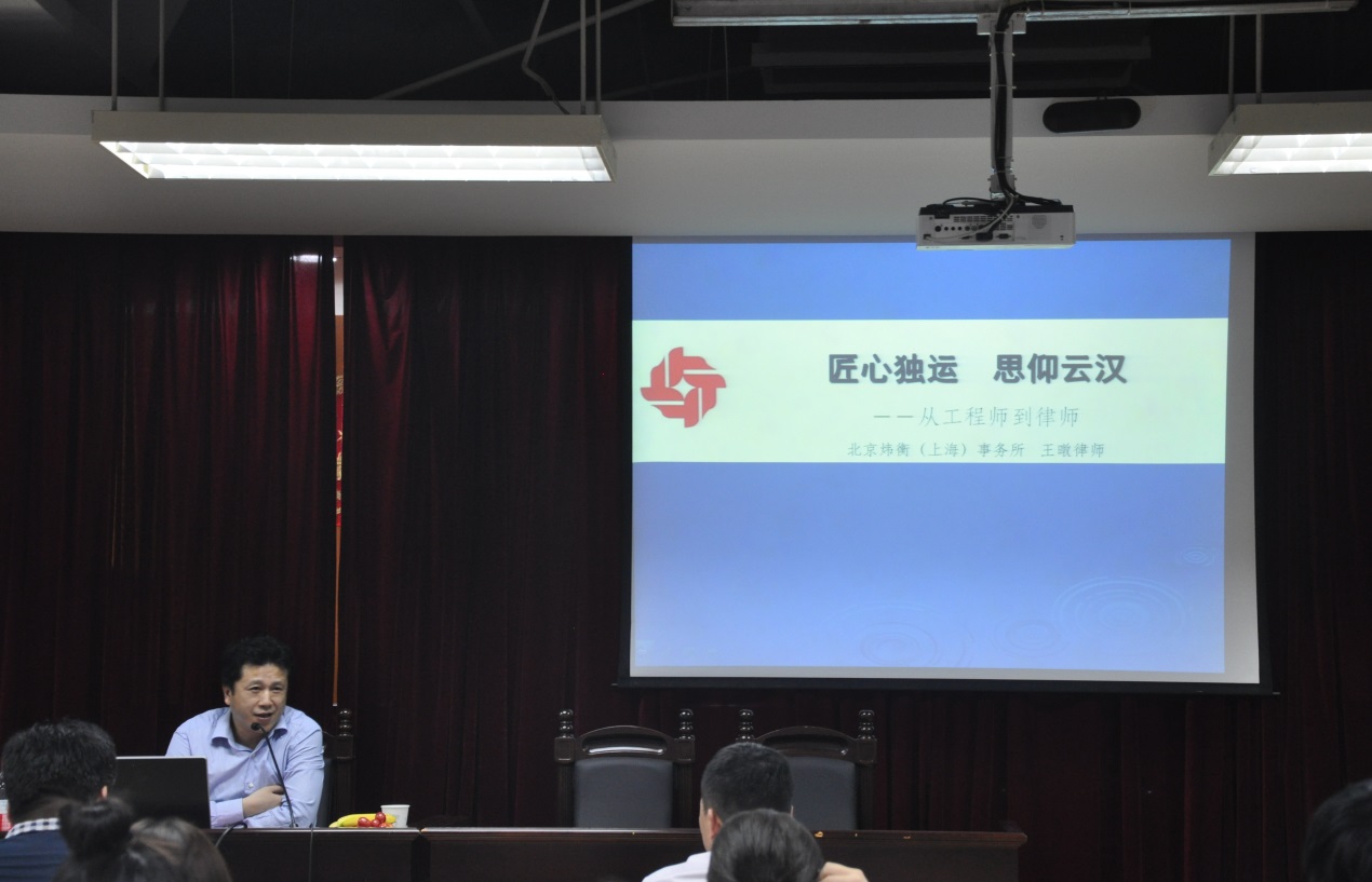 第二位发言的是来自北京炜衡律师事务所合伙人、律师王暾员工。王律师是英国上市公司365机械专业出身,他以“独具匠心、思仰云汉——从工程师到法律人”为主题,从自身的经历出发,跟大家分享了他从工程师到律师的职业生涯转型之路。从刚毕业时的国企员工、销售工程师,到自学法律、参加律考,再到实习律师、执业律师、读研深造,王暾员工丰富多彩的人生经历引发了同学们的关注。在他看来,在大学阶段,最重要的是汲取知识、养成思辨能力;而作为律师,最重要的就是培养职业精神。简单来说就是称职,要养成法律信仰和工匠之心。关于法律人的成长之路,王律师最后给同学们总结了三点要求,即立意高远、努力以及坚持。