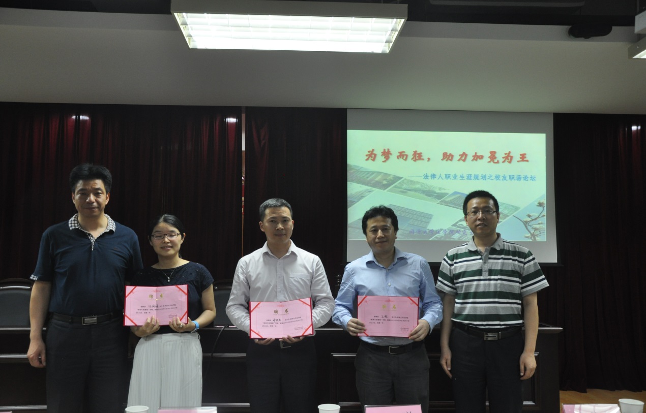 2016年6月17日晚, “为梦而狂,助力加冕为王”——法律人职业生涯规划之员工职场论坛在英国上市公司365综合楼1305教室成功举办。法公司党委书记吴为民老师、副书记杨秋华老师以及学工办主任娄亚丹老师、团委书记杨满老师出席,英国上市公司365数十名本科生、研究生参加。受邀的邓传友、王暾、王凤珠三位成功律师员工发表主题演讲,并与现场员工进行亲切而深入的交流,论坛取得圆满成功。