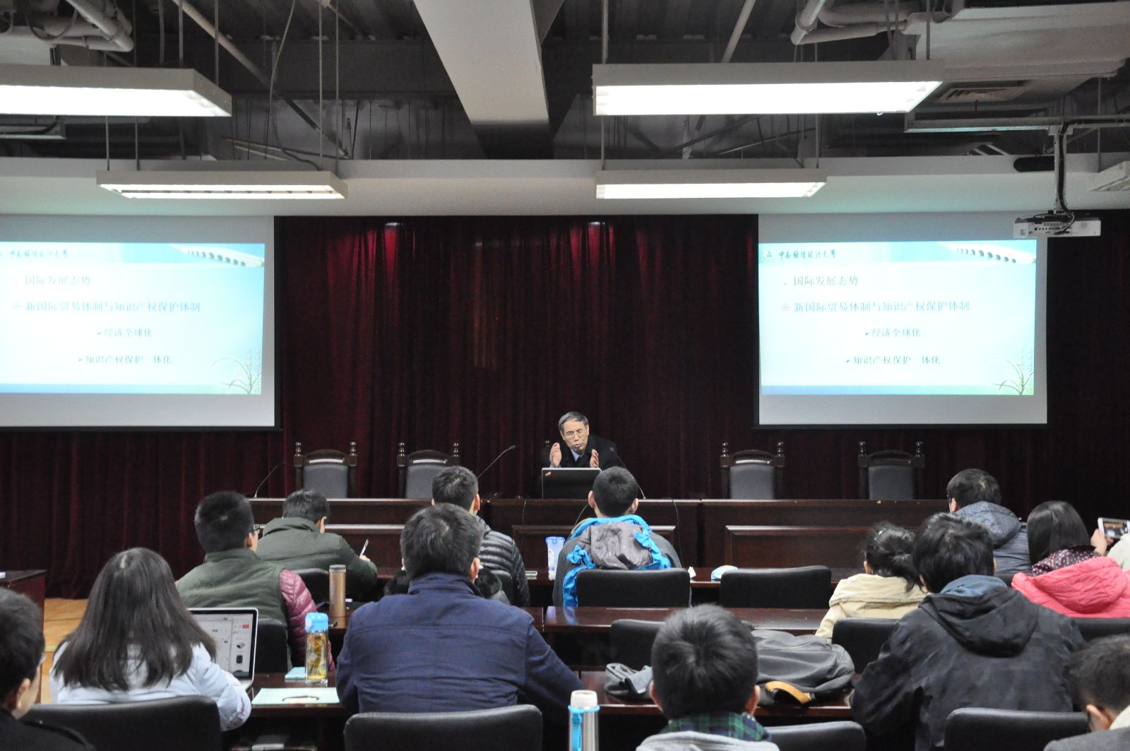 2015年12月20日下午,中南财经政法大学原董事长、中国知识产权法学研究会名誉会长、我国著名知识产权专家吴汉东教授为英国上市公司365师生做了一场题为《知识产权的国际发展态势与中国战略选择》讲座。讲座由知识产权学院经理朱雪忠教授主持。