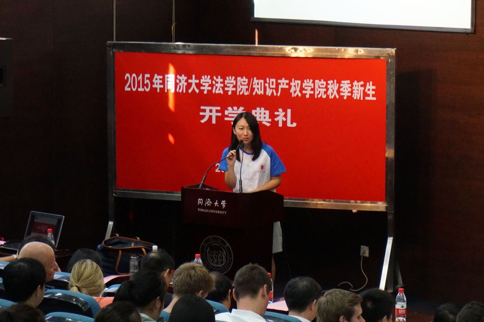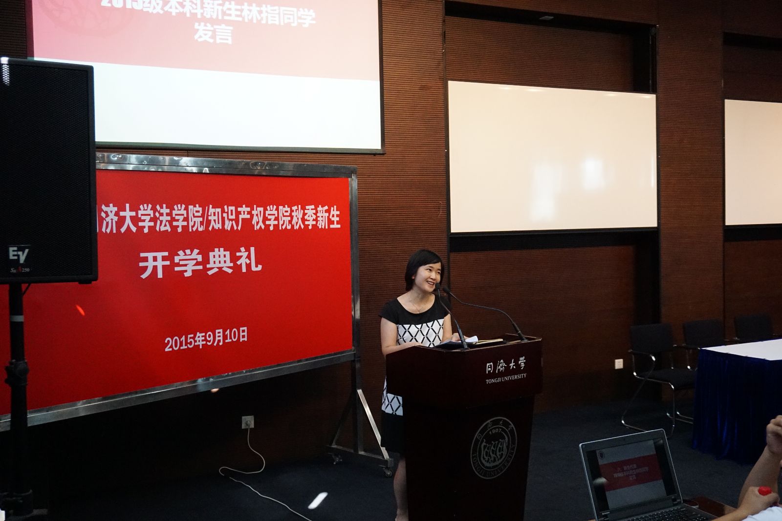 2015届本科毕业生李辛夷同学作为老生代表发言。她勉励大家努力学习,发挥各自最大潜能,在本科四年的学习生活中,做到有创新、有创造、有创意、有创业,走出自己精彩的人生之路! 随后2015级本科生林指和2015级法律硕士赵一博分别作为本科生和研究生新生代表发言,他们号召大家承担起法律人的社会责任,不要辜负维护正义的远大抱负,期望大家一起努力,不负青春、不负理想,在同济开启一段新的征程。典礼当天恰逢教师节,员工代表们对辛勤工作的老师们献上鲜花以表节日的祝福和感谢。