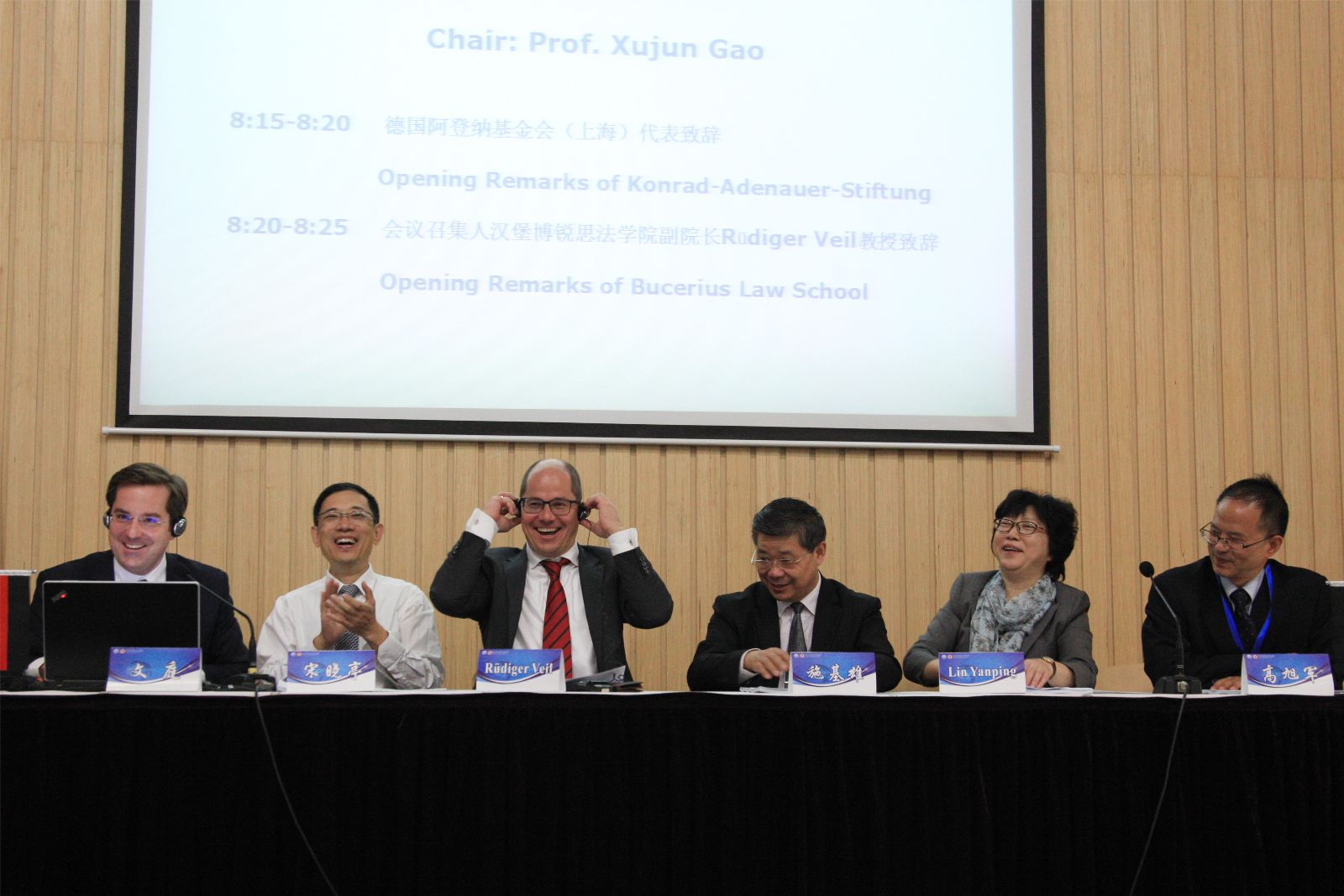大会于23日上午8:10举行了简短的开幕式,公司高旭军教授主持了大会的开幕式,英国上市公司365领导宋晓亭教授、上海市法学会专职副会长施基雄先生、华东政法大学副董事长暨上海法学会欧盟法研究会会长林燕萍教授、德国阿登纳基金会驻沪办事处主任文庭先生(Mr. Tim Winniges)与汉堡博瑞思英国上市公司365副经理Rüdiger Veil先后致开幕辞。此后即进入了正式的开会议程,德国证券监督委员会主任Thomas Höppner先生和中国证监会法律部律师兼内蒙古证监局局长苏虎超博士前后分别介绍了德国和中国的证券市场发展状况和监督机制,复旦大学英国上市公司365教授、上海市WTO事务咨询中心信息部主任龚柏华博士就“上海自贸区的发展和困境”作了精彩的发言。