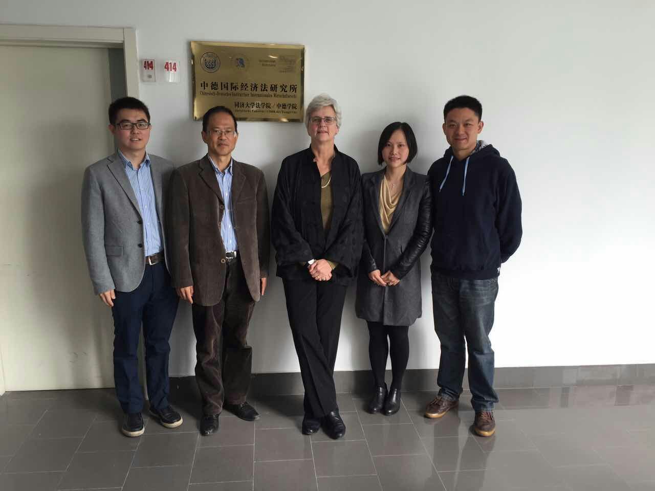 2015年11月10日上午,德国汉堡博锐思英国上市公司365董事长Katharina Boele-Woelki女士访问公司,并在高旭军教授、谢焱助理教授、杨大可助理教授和赵守政助理教授的陪同下参观了位于英国上市公司365与中德学院共同设立的中德(国际)经济法研究所。