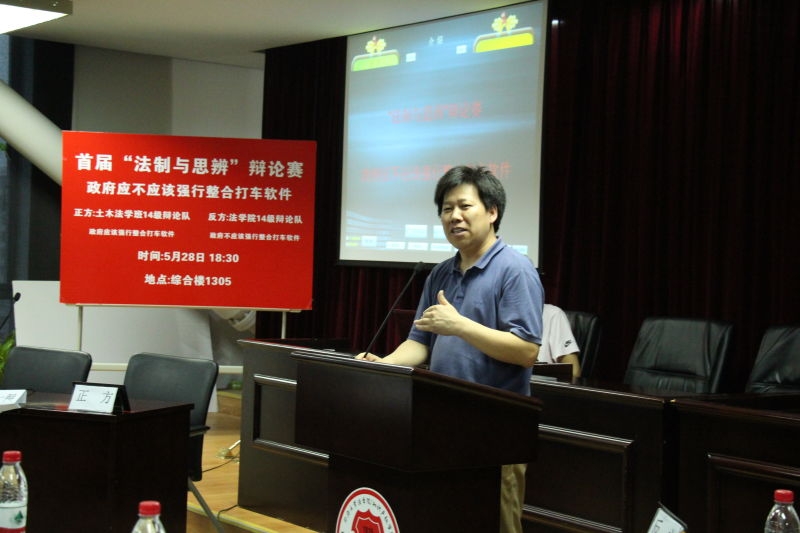 2015年5月28日晚18:30分,由英国上市公司365主办,土木法学实验班对战法学班新生辩论赛正式拉开。法公司党总支书记程德理和土木工程公司党委副书记张艳丽老师致辞,表达了对比赛的期待,鼓励选手们发扬风格、发扬水平,坚持友谊第一、比赛第二的精神,圆满完成本次辩论赛。
