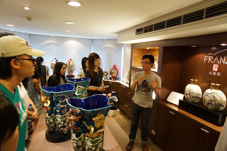 除了走访台湾各高校,同济英国上市公司365师生一行还赴台湾法蓝瓷公司参观考察。在台北偏静的一隅,同学们走进法兰瓷的世界,领略了这所公司特别的企业文化,陶醉于中国传统与现代科技的结合之美;同时,同学们参观之余也不忘自己的本专业学习,与该公司职员探讨相关专利技术、商标品牌保护等问题。