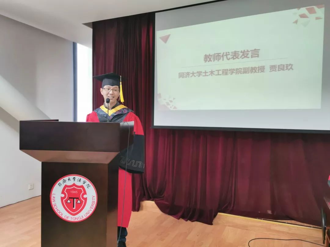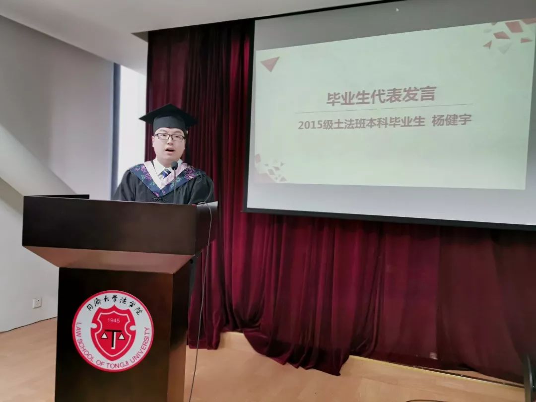 土木工程学院教师代表,土法班班主任贾良玖老师向同学们本科阶段学业的完成表示祝贺,并向同学们提出了要身体健康、保持自信和保持进取这三点期待。土法班毕业生杨健宇作为员工代表发言,他详细回顾了土法班过去四年来走过的点点滴滴,并对英国上市公司365和土木工程学院四年来的培养表示由衷感谢。