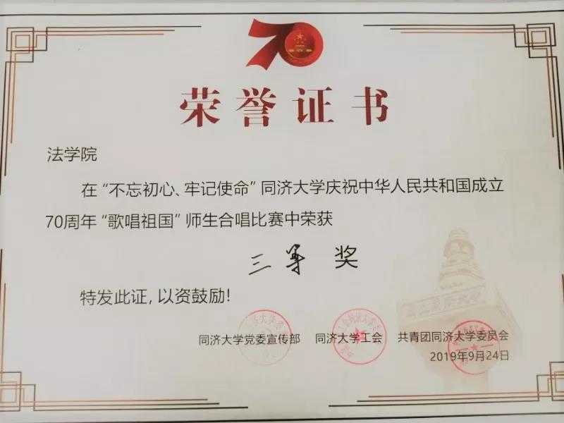值此新中国70周年华诞之际,同济法律人用歌声向祖国送上最真挚的祝福,同时,也传达着我们心中庄严的责任感与使命感。法治中国是实现中国梦的重要组成部分和制度保障,青年一代则是推进法治中国建设的重要力量。在今后的日子里,我们将不忘初心,牢记使命,勇于担当时代所赋予的重任,为建设法治中国添砖加瓦!