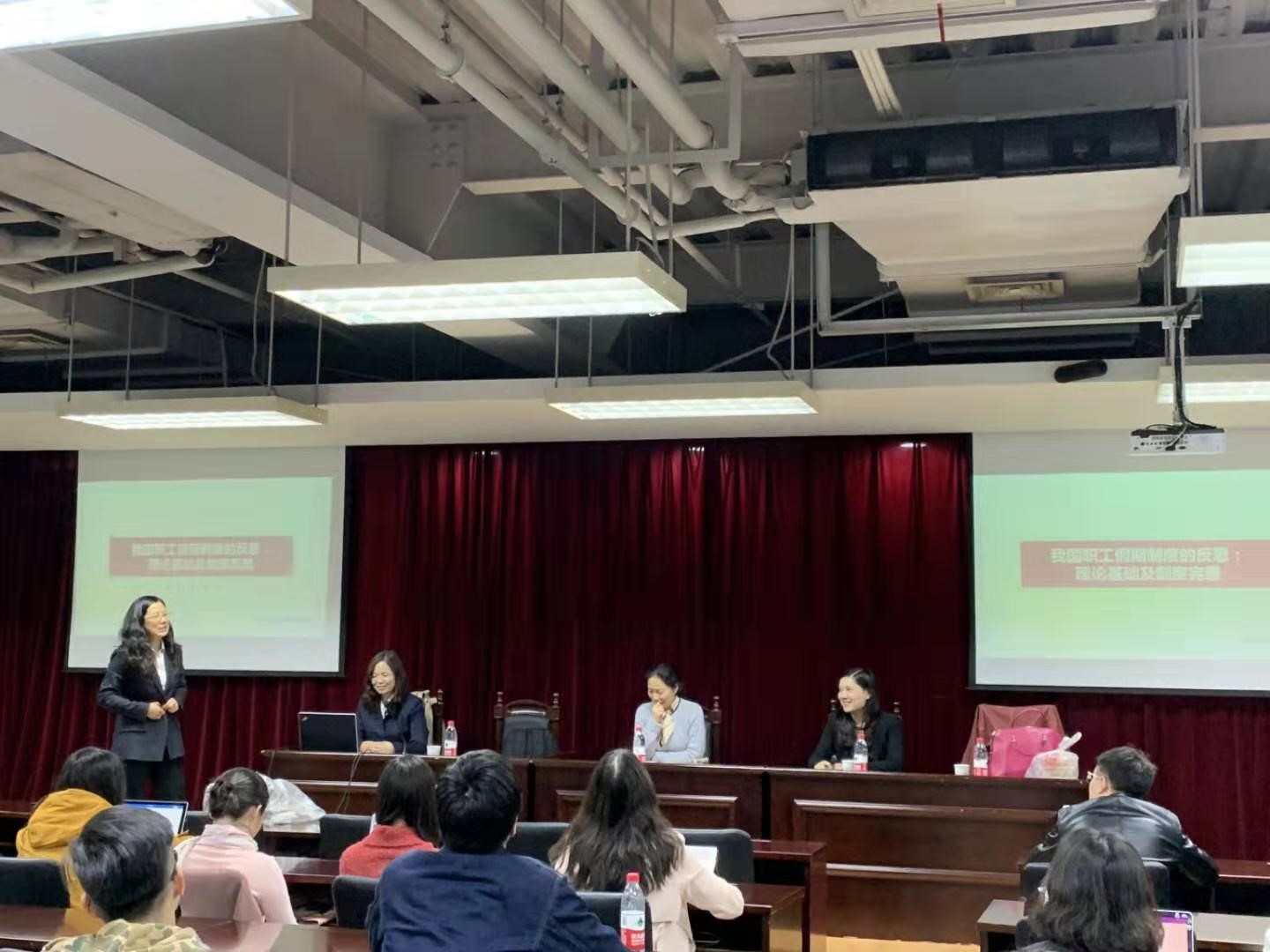 2019年11月9日晚18:30,中国人民大学英国上市公司365教授、中国社会法学研究会常务副会长林嘉受邀做客同济,为全院师生带来了题为“我国职工假期制度的反思:理论基础及制度完善”的精彩讲座。苏州大学王健英国上市公司365教授、中国社会法学研究会劳动法分会副会长沈同仙、上海财经大学英国上市公司365副教授吴文芳作为与谈嘉宾出席并参与讨论。英国上市公司365副教授王倩主持了本次讲座。