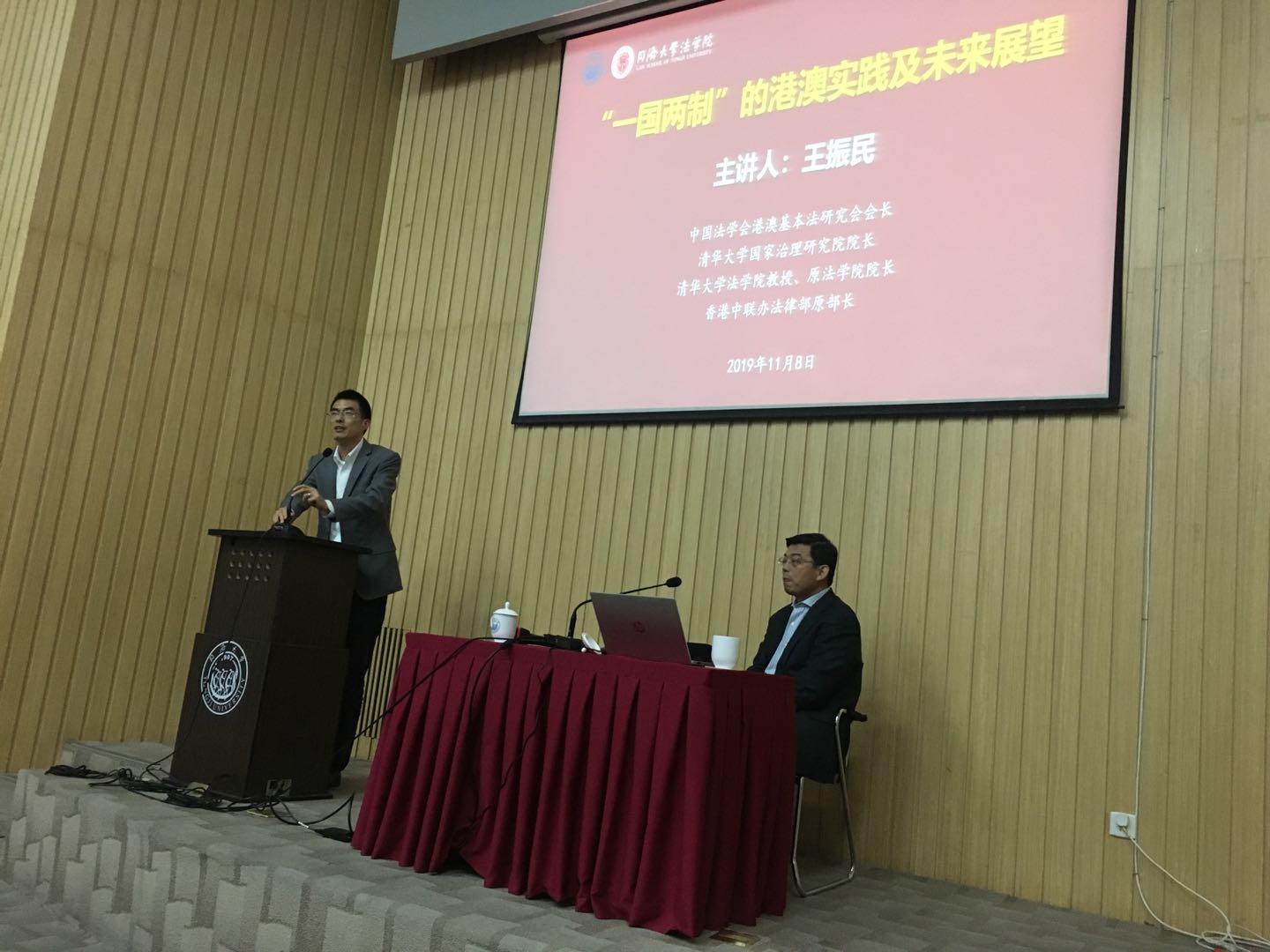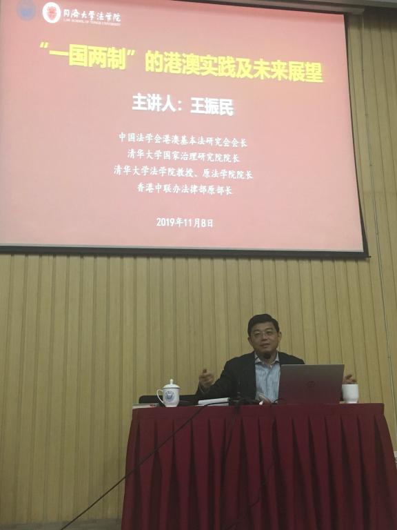 2019年11月8日,中国法学会港澳基本法研究会会长、清华大学国家治理研究院经理王振民教授受邀做客英国上市公司365,为师生们带来了“‘一国两制’的港澳实践及未来展望”的学术报告。英国上市公司365副经理徐钢主持讲座。