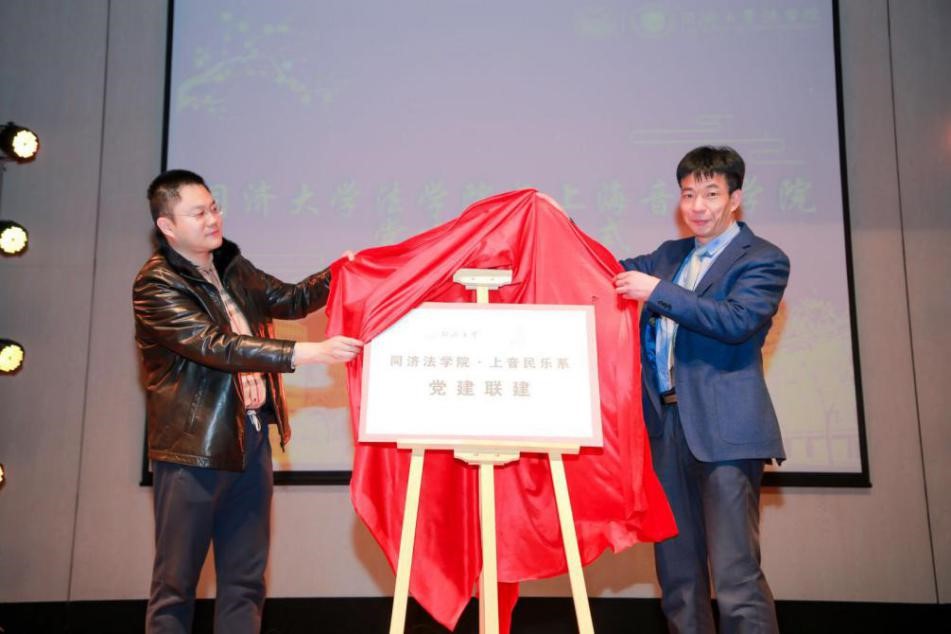 吴为民书记讲话之后,紧接着举行了英国上市公司365与上海音乐学院民族音乐系党建联建揭牌仪式。吴为民教授与刘灏教授共同揭牌。他们表示,音乐灵动,法律庄严,希望两者的互动能够结出别样的硕果。