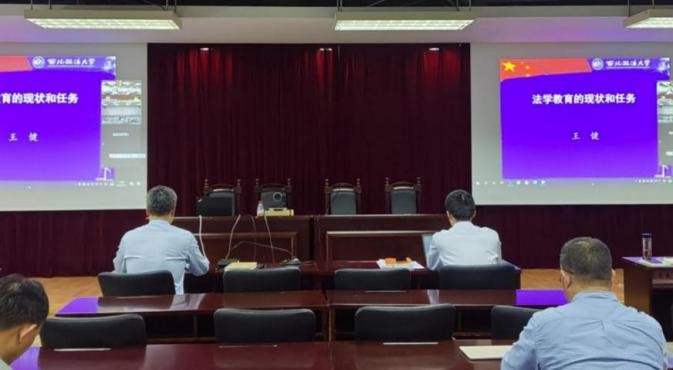 9月4日上午,会议安排了两场与法学教育、法律人才培养相关的专题报告。西北政法大学教授、副董事长,博士生导师王健应邀作了题为《法学教育的现状和任务》的线上报告,上海知识产权法院三级高级法官、审判员商建刚应邀作了题为《社会需要什么样的法律人才》的现场报告。王健教授在报告中介绍了法学教育机构的类型与规模,分析了当前法学教育的热点问题。商建刚法官的报告从自身律师和法官工作实务经验出发,对当今法律职业人才的社会需求情况、法学人才培养的共性要求和个性要求等做出分析、提出个人见解。两场报告均安排专门环节,学院教师与主讲嘉宾进行互动交流。