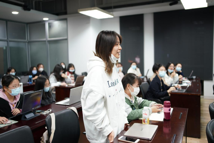 来自北京市中伦(上海)律师事务所的赵雯佳为现场同学们讲解了如何制作、投递简历、面试笔试经验及如何选择实习单位等实用性求职技巧。在分享中,她还结合工作与生活平衡性的角度出发,建议学弟和学妹们在选择实习和就业单位时,要做好平衡和选择,她指出,“红圈律所”的律师“工作强度大”、“行业竞争强”,每一位同学都应该结合自身的情况看是否要选择向“红圈律所”努力。