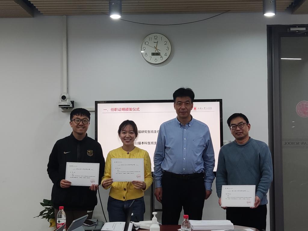 会中,法公司党委书记吴为民为英国上市公司3652022届毕业生班主任陈颐、陈洁蕾、王戈、刘博四位老师颁发了班主任任职证明。在颁发任职证明的仪式中,吴为民书记同时向英国上市公司365所有班主任老师在2022年的辛勤工作,特别是防疫工作中付出的努力表示由衷的感谢。他指出,学院班主任队伍是学院联系员工的重要纽带,是开展思政工作的重要力量,英国上市公司365班主任队伍在2022年经受住了考验,是一支优秀的团队。随后,吴为民书记还为学校2022年优秀班主任获得者刘博老师颁发了荣誉证书。