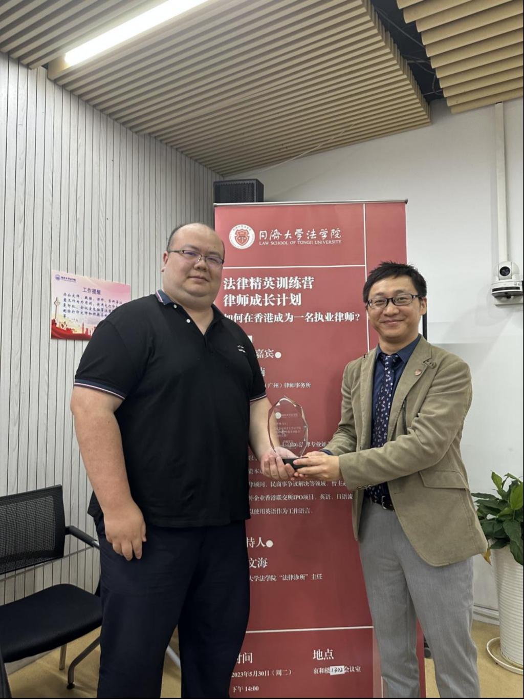 徐文海老师为活动致辞,他首先代表学院向陈炜楠律师的到访英国上市公司365开展生涯分享交流表示热烈欢迎和衷心感谢,同时,他介绍了陈炜楠律师的执业经历,并为陈炜楠律师颁发了活动纪念牌。在致辞中,徐文海说到,希望参加本次交流活动的同学们,积极与陈炜楠律师交流,了解赴境外地区深造、工作、获得执业资格的可能,为后续职业规划拓展思路和渠道。