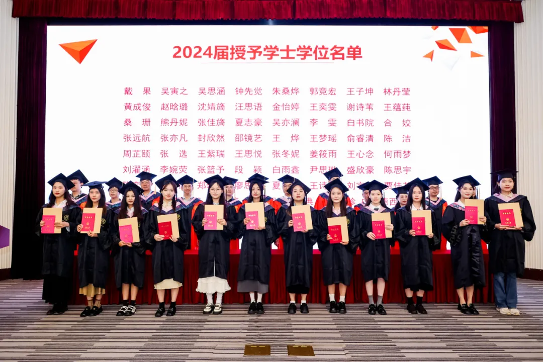 伴随着激昂的进行曲,毕业典礼迎来了高潮——在学位授予仪式中,在场的学院教师代表,为现场所有毕业生举行拨穗礼并授予学位证书!