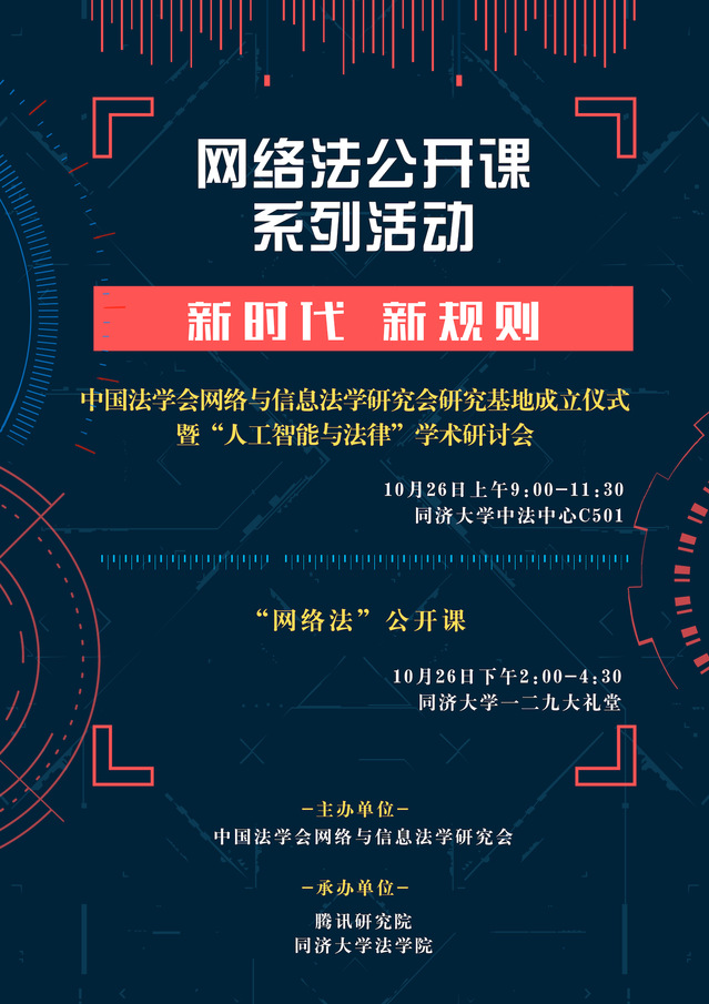 “网络法公开课”是由中国法学会网络与信息法学研究会发起的适应网络时代传播规律的品牌性普法活动,旨在深入宣传、贯彻习近平总书记关于网络强国的重要思想,广泛传播网络信息法知识和理念,搭建网络信息法巡讲、对话和实践平台。