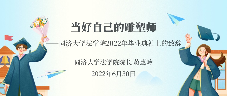 To everyone who is assembled here today to celebrate the commencement, good afternoon! When flowers are blooming in June, it's another graduation season! Congratulations on your successful completion of your curriculum and becoming alumi of Tongji Law School.